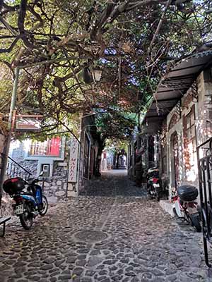上午第一站是Mytilene城堡。城堡非常恢弘,还保留着许多遗址痕迹。这里还有个地下水库,用于战争时期储存水源。比较有意思的是,当时城堡修建和使用的时候,承包所在的位置并不是和Lesvos主岛连在一起的,中间有一道海峡。但是随着演变这里逐渐变成了河流,最后河流沉积变成陆地,城堡那块岛礁和主岛连接在了一起,城堡也就这样跑到主岛上了。现在仍然可以看到当时残留的运河的痕迹,以及古港口。